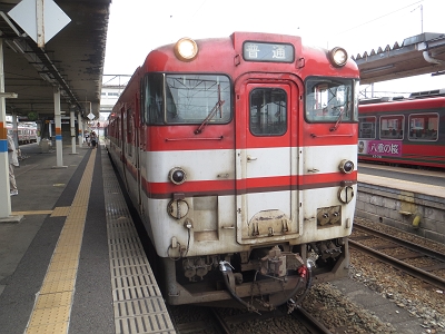 車両故障のため普段前面には出ない2号車キハ48-549が 先頭でした。こんな珍風景に出くわすのはラッキー?でした。 |