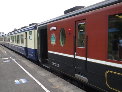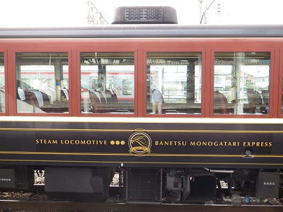 そしていよいよ本日のメインイベントSLばんえつ物語。2005年に1度乗ったのだが、その時はまだ、茶色の編成でした。青色塗装になってからは初めての乗車です。しかもこの春から最後尾にグリーン車が付きました。今回は18きっぷでの乗車なので、乗ることはできませんでしたが、機会があれば、このグリーン車も乗ってみたいです。