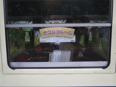 | 5号車はオコジョルームになっています。 | オコジョルームの様子 指定席ではなく、フリースペース扱いです。 |