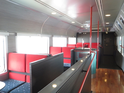 | 2号車 ラウンジスペース 売店で買い物をした人はここで飲食が可能です。 |
