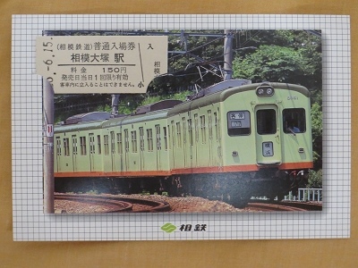 | 特製台紙付の相模大塚駅 硬券入場券です。 | 入場時に配布されたポストカード |