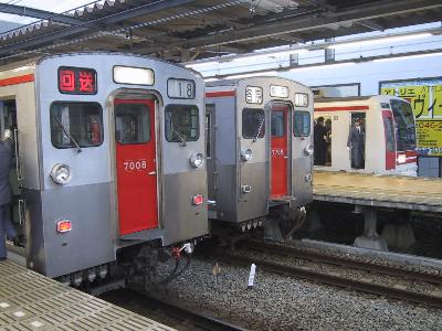 | 7000系と良く似ていますが、外見では側面窓が2段式。上部の赤帯びが若干太い。ベンチレーターなどに違いがあります。 |