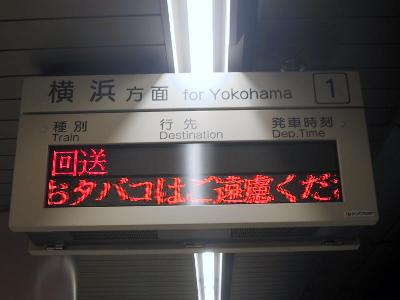 | 発車案内は「回送」でした...。「臨時」にして欲しかったですね。 | 二俣川に戻ってきました。このまま西谷まで回送で引き上げます。 |