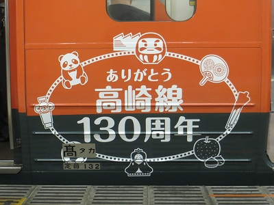 | 高崎方ラッピング | 部分的なラッピングです。 どうせなら、1両まるごとラッピングして欲しかったところです。 |