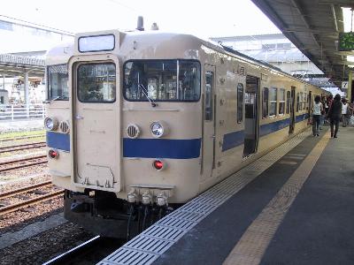 気が付けば、昼も過ぎ、お腹も減ってきたので、駅弁屋を探すが、それらしきものがない。岩国ともあろう駅がと思って、さらに、うろついて、駅構内のそば屋(といっても立ち食いではない。)に大名寿司という弁当がおいてあったので、それを購入。岩国からは、昼下がりの山陽路をのんびり下る。最近の山陽線の閑散時間帯は2両編成の115系のため、車内はちょっと混雑。ドア脇のロングシートに腰掛ける。夏休みのため、地元の中高生のグループがプールにでも行くのであろうか、友達同士で乗ってくる。しかし、席が空いていないため地べたに座り込む。どこでも、同じだな。でも、ちょっとマナー悪すぎ、検札にきた車掌がたまりかねて注意をする。2時間ほど乗ったであろうか、小郡に到着。