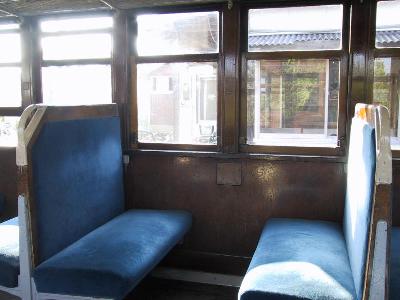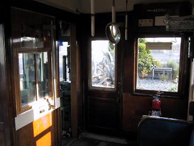 そして、雀田を降りて、小野田支線の発着するホームを見ると、な、なんと、チョコレート色の物体がいるではないか!まじ!超ラッキー!ダメだと思っていただけに、余計に嬉しいものである。思わず、スキップしながら、クモハ42に乗り込んだ。独特のタールとニスの匂い、木枠の青色のクロスシート。日よけのよろい戸。どれをとっても、超レトロ。まさに走る博物館である。そして、吊り掛けのうなり音。車内は乗客が数名とあとは鉄とおぼしき人が自分も含め3名。乗客が少ないのは、予想していたが、夏休みだから、もう少し鉄がいてもよさそうなものだが...そして、5分程で終点の長門本山に到着。いきなり線路がぷつりと切れたような格好の駅である。ここで、折り返しまで26分あるので、なめるように、眺めたり、写真を撮ったり。(笑)。