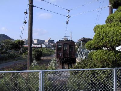 | 長門本山に停車中!なんともいえないのどかな雰囲気 | やや下から見上げてみました。 |