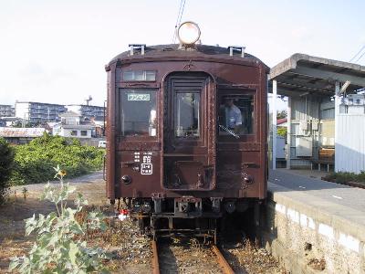 | 松電3000系は元京王の3000系 松本駅 | 新村に留置してある元5000系。 色もあせて、前照灯もなくなっていてちょっと痛々しい。 |