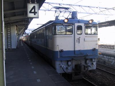 | 機関車付け替えの間、しばし、顔を出す。 | そして、下関からは直流機EF65で京都まで行く 下関駅 |