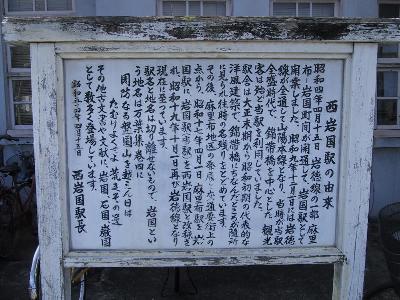 | 西岩国駅 洋館風のつくりがすばらしい。 | 駅前にある西岩国駅の由来 |