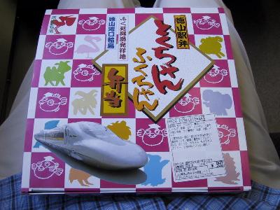 まずは、オレンジカードあさり。みどりの窓口へ行ってみる。最近は、東日本はSUICA、西日本はJスルーカードが幅を利かせているため、オレンジカードの発売が少ないのだが、ここは、Jスルー圏外ということで、かなりいろんなオレンジカードがあった。そしてバカな私は全種類8000円分も買ってしまう。そして、次は駅弁。山口とくれば、やっぱりふぐ。ということで、ふぐの唐揚げが入っている「とくちゃんふくちゃん弁当」なるものを購入。次に乗る、岩徳線の車内に持ち込んで、さっそく、たいらげる。