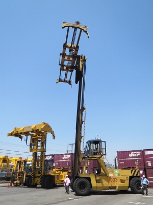 | 大型フォークリフト 腕が横に広がります。 | すごい高さまで上がります。 |
