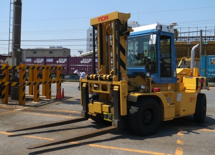 | 小型フォークリフト | 前面の爪の部分でコンテナを持ち上げます。 |