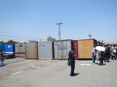 | 広大な敷地です。 | コンテナを使ってブースが作られていました。 |