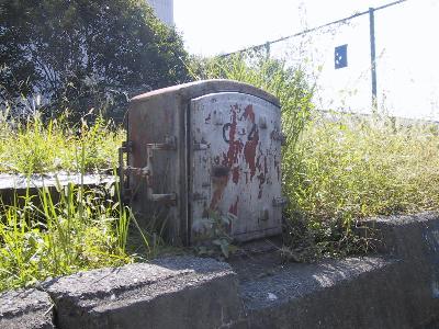 | 右側は家庭菜園っぽくなっています。左側はここも駐車場になっています。 | それでは、入ってみましょう。さっそく信号ボックスが2個ありました。 |