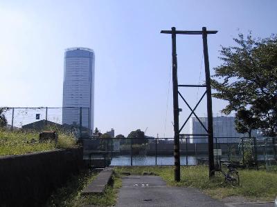 その1つを拡大してみます。橋脚の残る対岸は塩浜になります。 |