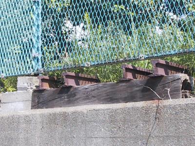 | 先ほどいた場所です、ここ鉄橋がかかっていたと思われます。 | こちら側にはこのように線路の切断面を見ることができます。 |