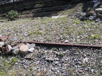 | 先程の対岸に来ました。ここは、短い区間ながらも、 レールがちゃんと2本、目にみえるように残っています。 |
