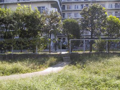 | なんと、マンションの敷地からこの廃線跡に入れる出入口ありました。 | ということで早速、入ってみました。辿ってきたところを戻ってみます。 |