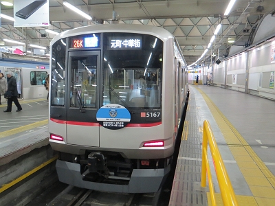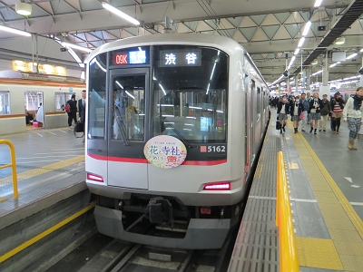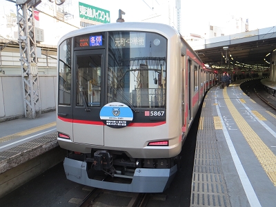 | 2012/12/06から武蔵小杉・新丸子に川崎フロンターレの応援歌が 発車メロディーに使われることを記念して5167Fにヘッドマークが 付けられました。 2012/12/07 渋谷 |