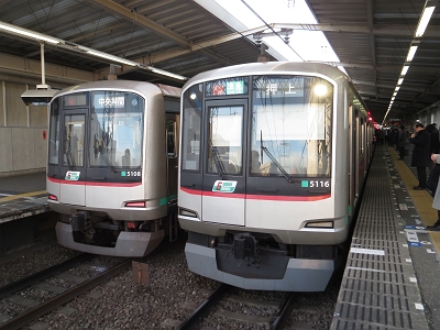 | 5106F 2012/12/21 あざみ野 | 5000系同士の行き違い 2012/12/21 あざみ野 |