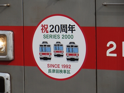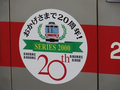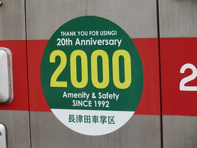 2012年12にデビューして20周年を迎えた田園都市線の2000系にヘッドマークが取り付けられた。9000系の田園都市線版ともいえる車両で3編成30両しか在籍していない希少な形式であり、また、東武への乗入れ非対応となっているいわゆるサークル?編成のため、押上までしか乗入れもしていない。なんとなく地味な存在の2000系だが、そんな2000系も20周年を迎えヘッドマークが付き注目を集めることになった。さらに特筆すべきは、このヘッドマークは会社主導で行われたのではないらしく、長津田電車区、長津田車掌区、長津田検車区、長津田駅と4つの組織がそれぞれヘッドマークを作成して取り付けたようである。
