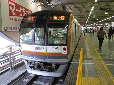 | 副都心線直通運転に先立ち習熟運転のため東京メトロ10000系が 東横線に貸し出されて運用につきました。 10103F 渋谷駅 2012/11/15 |