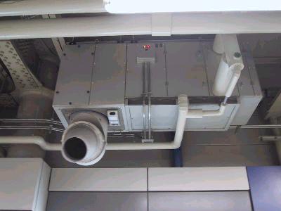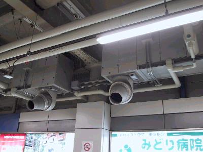 | これが青葉台駅ホームに設置されたスポット冷房。 | 全部で2台設置されており、通風口は首を振る。 ちょっと不気味だが、風があたっているときは涼しい。 |