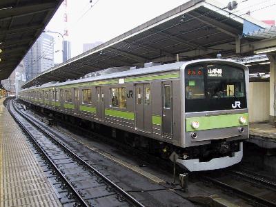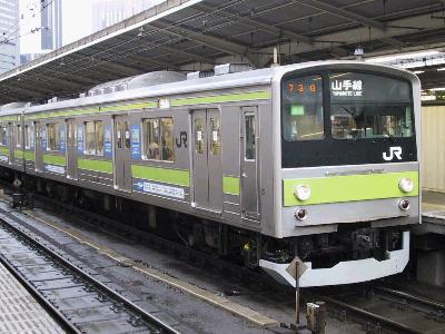 | 長年お馴染の205系です。まもなく他先区への転出が始まり、 数年後には山手線とこのウグイスの帯は見られなくなります。 |