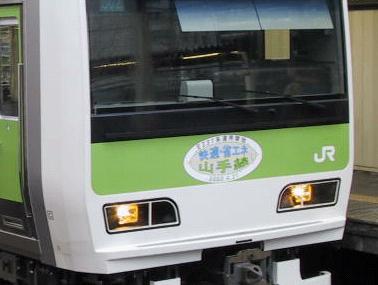 | 外回り2本目には、「快適省エネ 山手線」のヘッドマークがついてました。本日は、内回り1編成。外回り2編成の都合3編成が運用についてるようでした。 | |