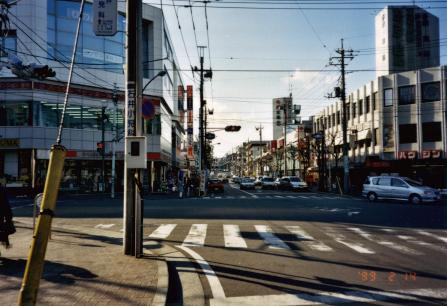 | @ 「剣山」(けんざん)交差点からあざみ野方面をのぞむ。 道の両側にはあざみ野団地がある。 |