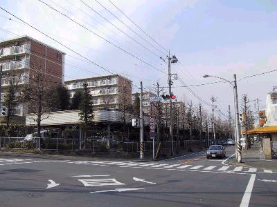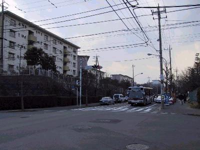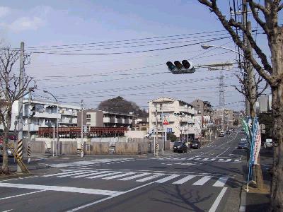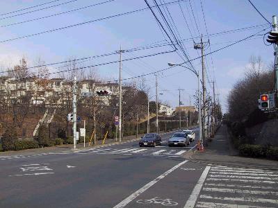 A同じ交差点の反対側。この交差点は市境で、交差点の向こうは川崎市虹ヶ丘になる。 後ろは虹ヶ丘団地。 |
