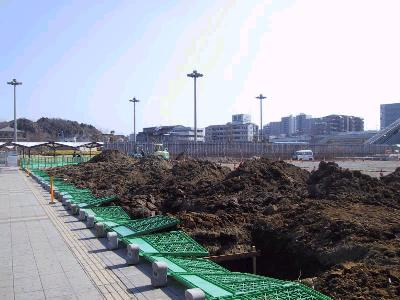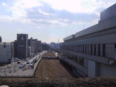 | センター南からセンター北方面を望む。すでに駅の予定地は確保されている。 | 駅予定地内ではすでに工事が... |