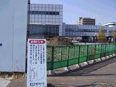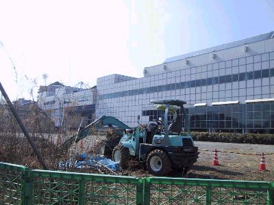 | ショベルカーも入ってる... | と思い気や、単なる舗道整備工事だったらしい。 しかし、これが、駅建設工事のための前準備なのかは定かでない。 |