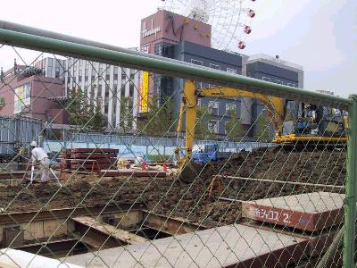 その、もと駐車場では工事が進んでいます。 左奥はセンター南駅です。 |