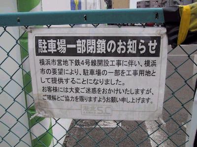 | センター南駅前の港北東急百貨店の駐車場の一部が4号線の 工事用地として提供されています。 |