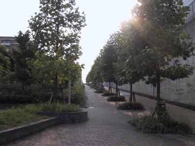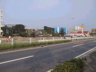 | さらにセンター北側に進みます。写真中央に地下鉄建設用に空き地に なっているのが分かります。この付近は地下になると思われるが、 地形的に谷になっているので、写真手前の道路を越すところは高架に なる可能性もあります。 |