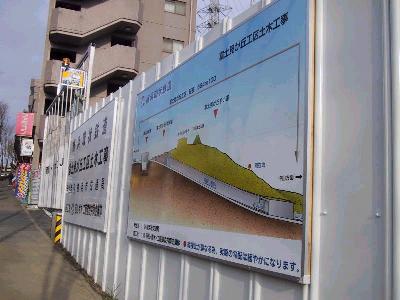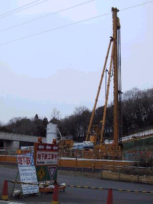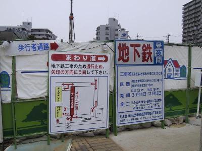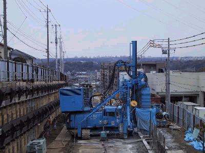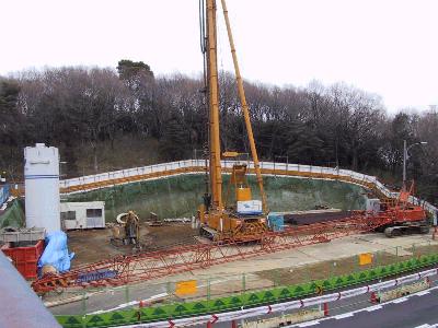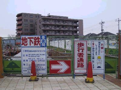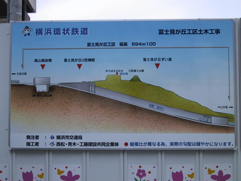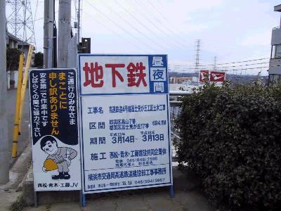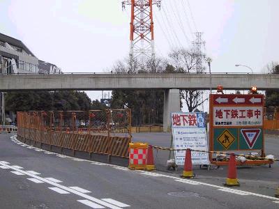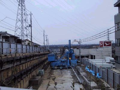 | 葛が谷を出るとすぐに、高山工区に入ります。 ほぼまっすぐに、地下鉄建設工事の様子がわかります。 高山はここの地名からとったものです。 |