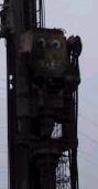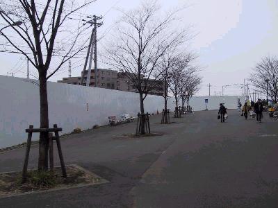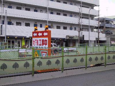 | 重機に顔がついてます。(笑) | 工事区間は長い距離で、囲いに覆われています。 葛が谷方面を振り返ります。 |
