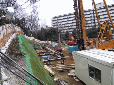 | 後ろは葛が谷公園です。 大きな重機が入ってます。ボーリングでしょうか? |