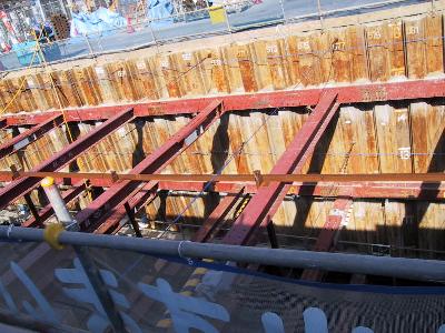 | この下に地下鉄が通ります。ここは開削工法のようです。 | |