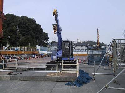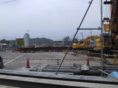| それでは、実際の工事現場をのぞいてみましょう。日吉方面を眺めてみます。下には鉄板が敷き詰められています。 | |