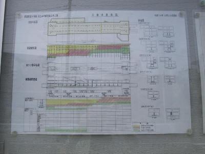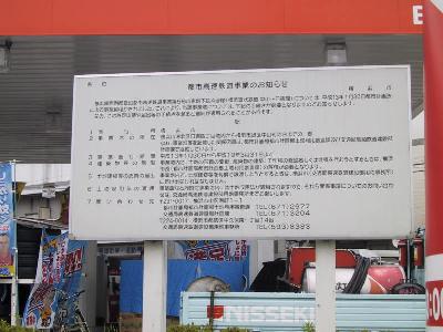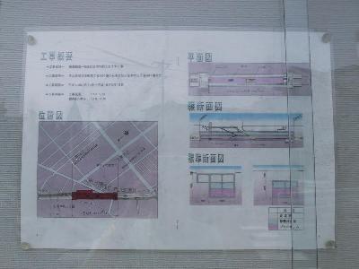 | 反対側から眺めてみます。 | 近くには都市高速鉄道事業のお知らせの看板がたっています。 |
