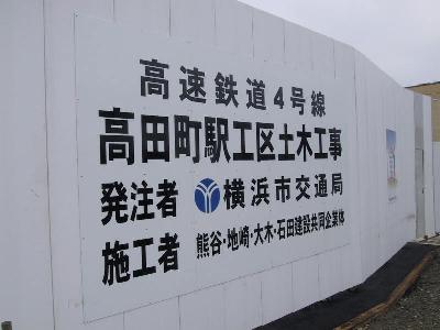 | 高田町駅工区の全景 | 高田町駅工区の看板 |