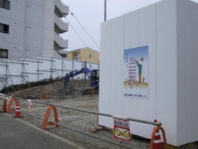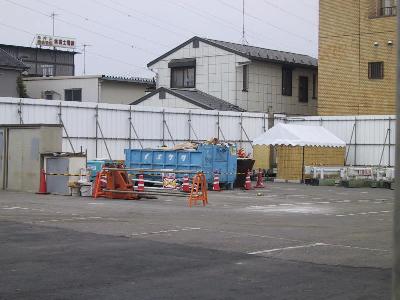 | 道路を隔てた反対側にも工事用地がありましたが、こちらは何の看板もたっていないので、地下鉄工事なのか不明ですが、 位置的に、駅の出入口ができるものと思われます。 | |