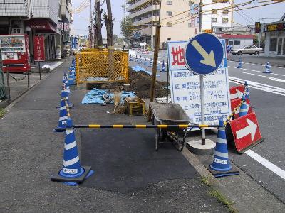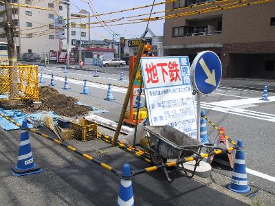 | 中山駅 駅前ロータリーです。この下の地下鉄が出来る予定です。 | ←の写真を直進したところです。地下鉄工事が始まっていました。 |