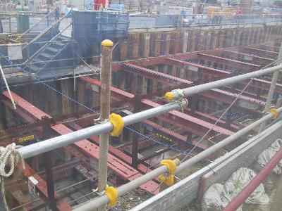 | すでに、囲いがあり、盛土やショベルカーが入ってます。 | 工事の詰め所もできています。 |