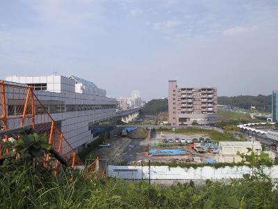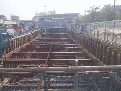 | 鉄板で覆われている下もすでに工事が始まっていると思われます。 | センター南駅の横です。ここに4号線の駅ができると思われます。 パネルでは未発注工区になっていましたが、工事の準備が はじまってるようにも見えます。 |
