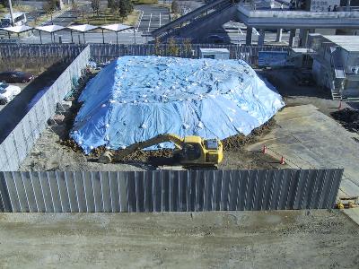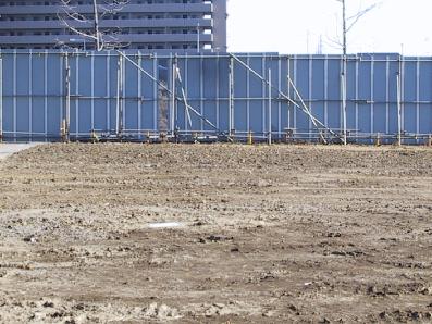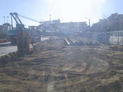 | ご覧のとおり、土がかぶされています。 | まだ一部大型クレーンが入っています。 |