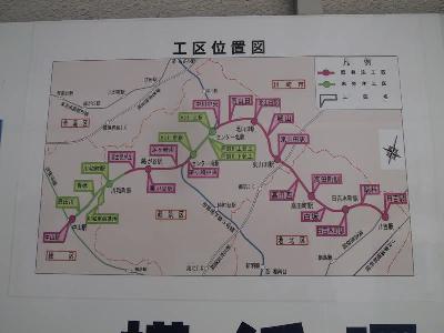 | センター南駅構内のパネルから 赤が着工区間。緑が未着工区間です。すでにかなりの場所で 着工しています。 |
